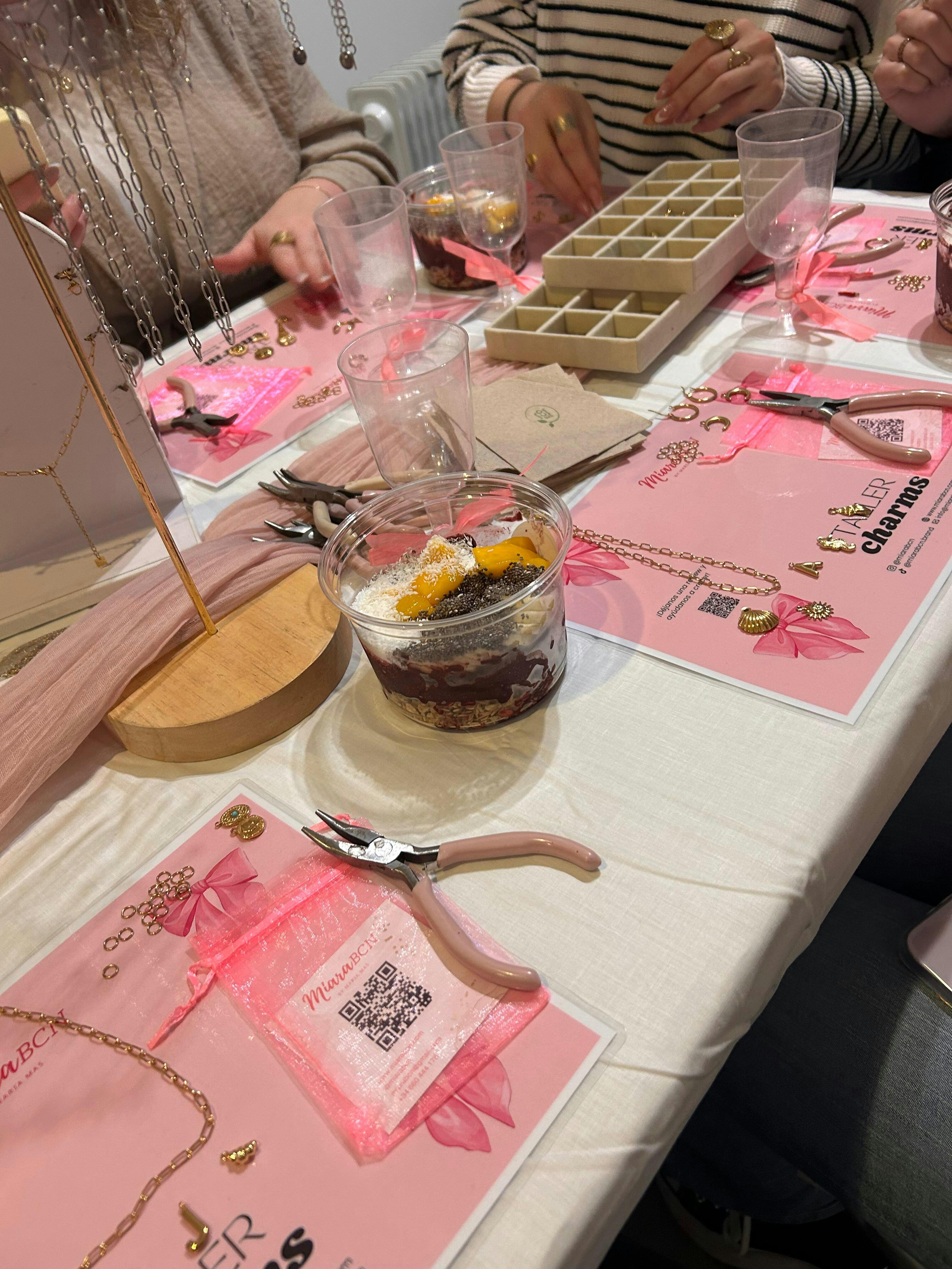 Acabamos de salir del taller. Se me ha pasado volando! María es un encanto y tiene unos charms preciosos. Nos hemos ido súper contentas con nuestro collar y pendientes totalmente a nuestro gusto! Volveremos si o si🩷✨
