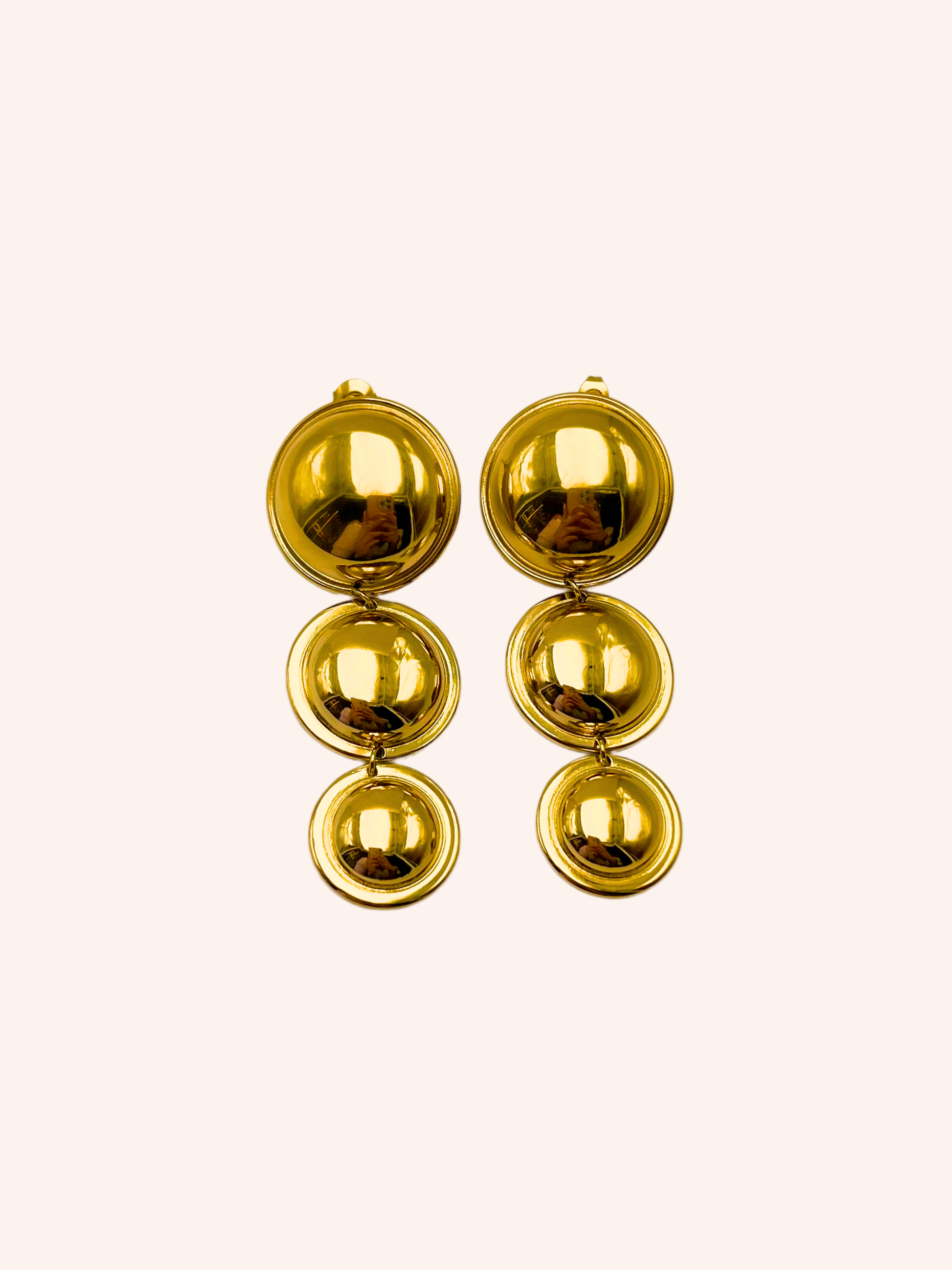 Pendientes formados por tres circunferencias con diseño liso. Son de acero inoxidable, en color dorado, te van a durar mucho tiempo intactos.