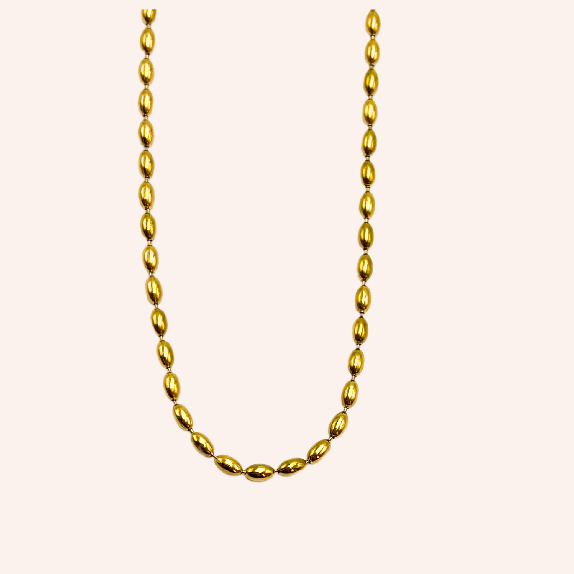 Colgante de cadena de bolitas alargadas de acero inoxidable, perfecto para combinar y hacer layering.