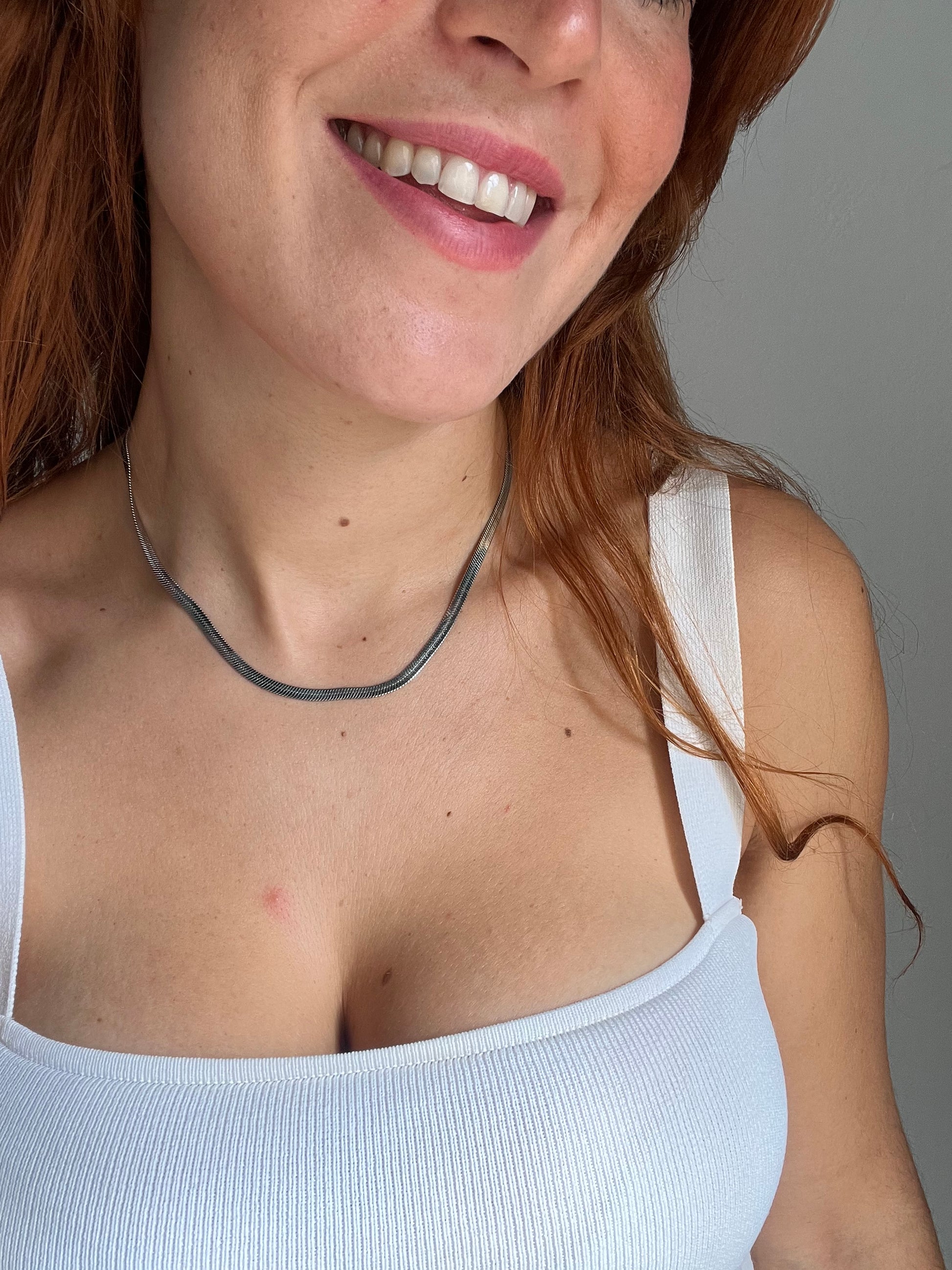 Cadena de acero inoxidable en forma plana. Perfecto para combinar con otros colgantes y verte guapa y elegante! Está muy de moda!