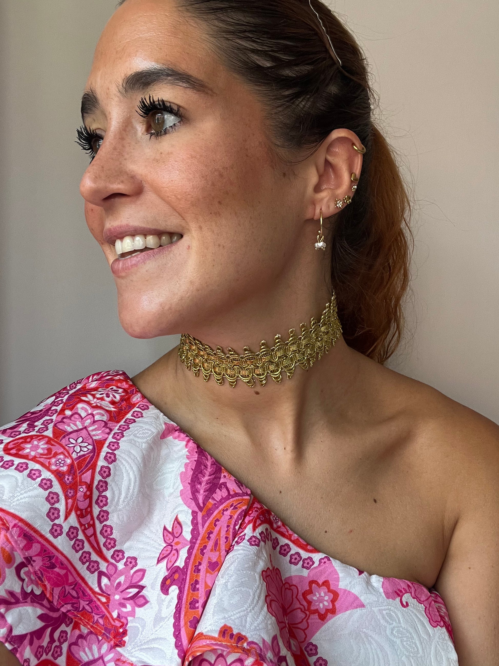 Choker hecho a mano con tejido dorado. Tiene mucho éxito y queda genial con todos tus looks! Se ajusta a tu cuello. Están hechos a mano en Barcelona.