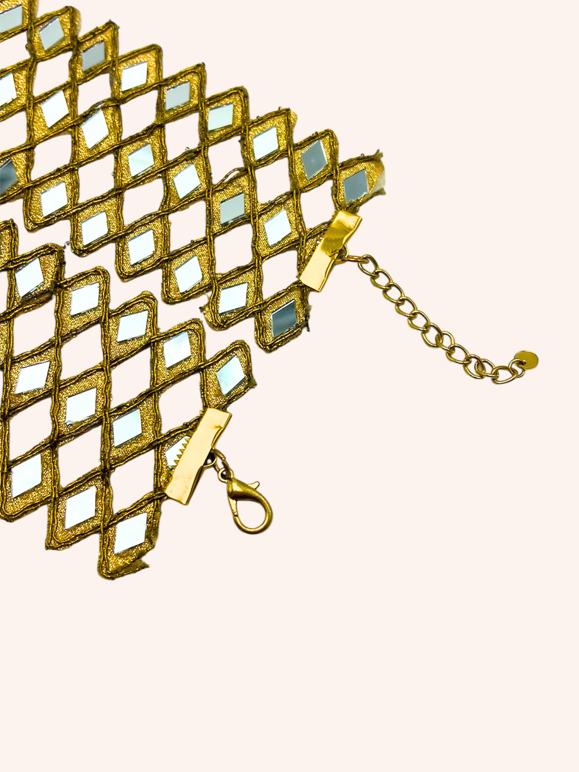 Cinturón de pequeños espejos, muy en tendencia. Se ajusta a tu cintura con cadena. Están hechos a mano en Barcelona.