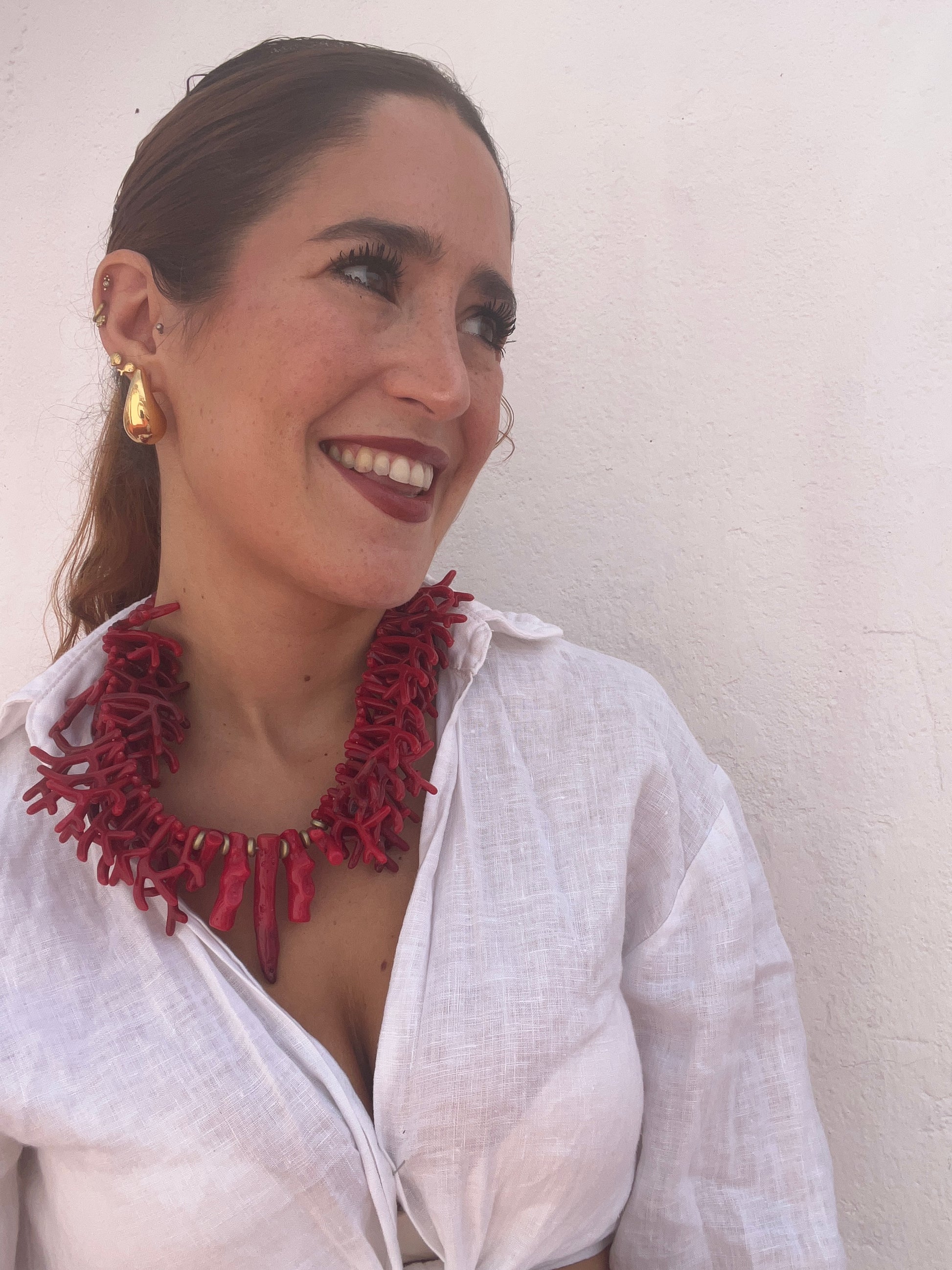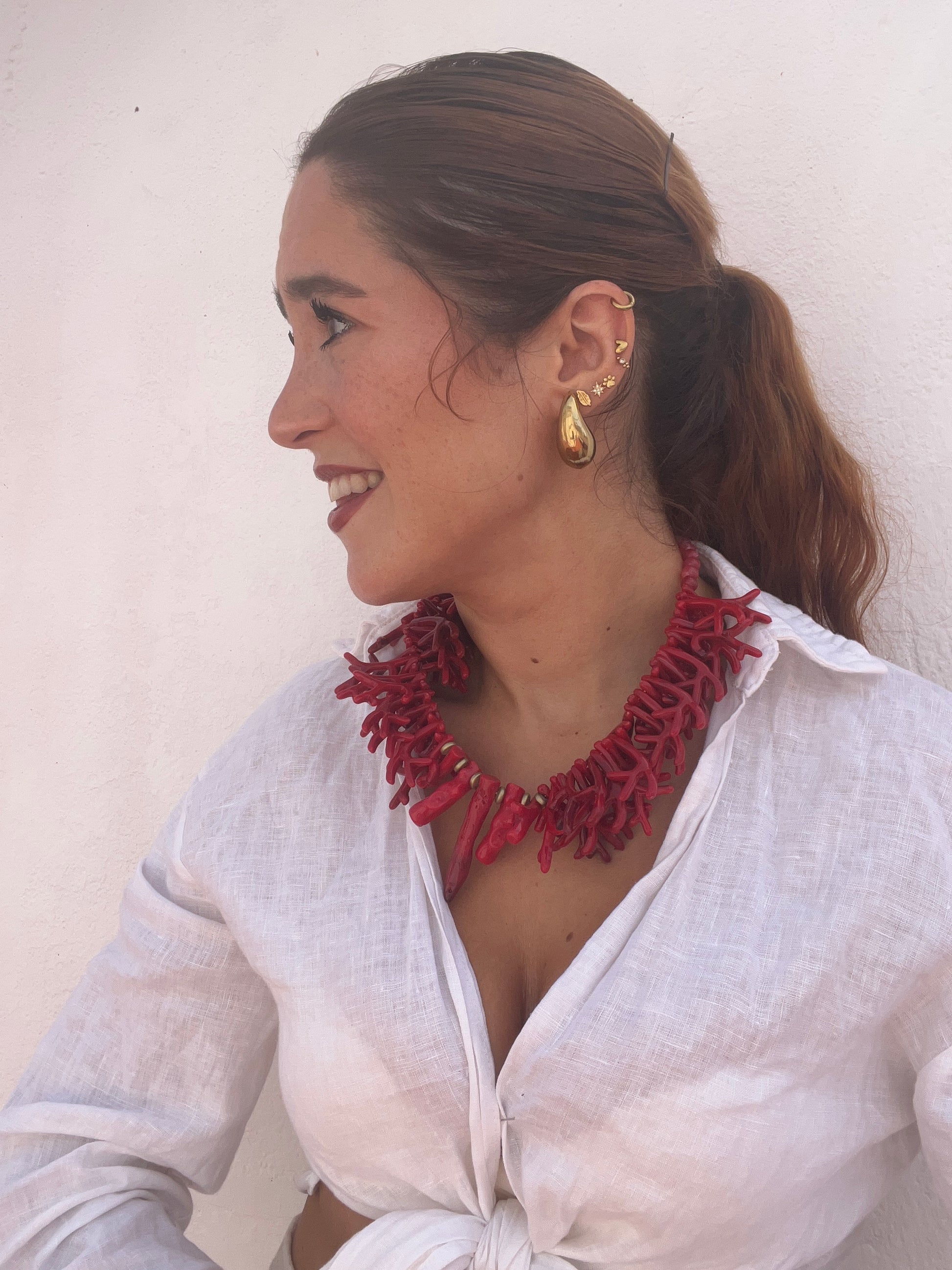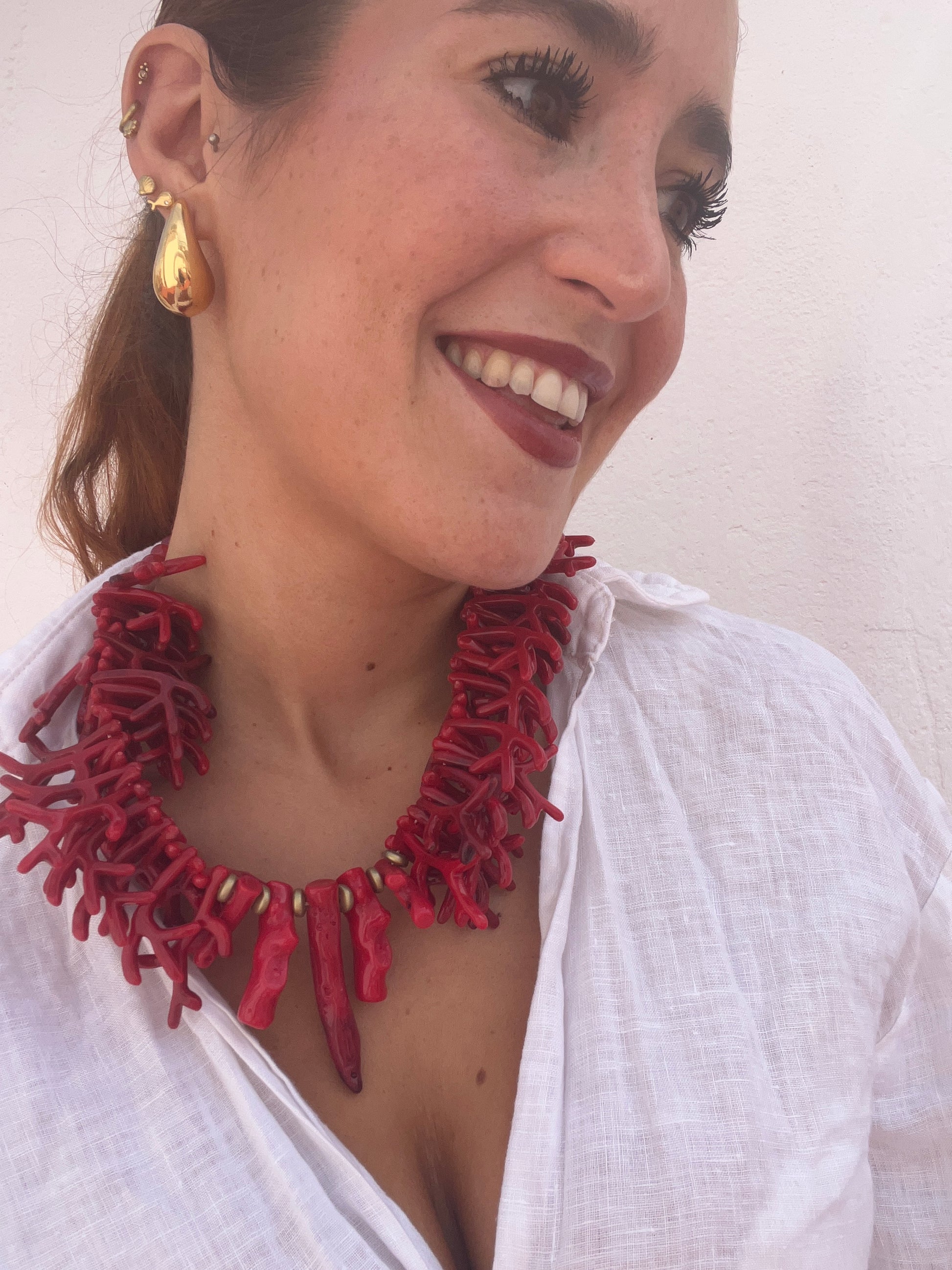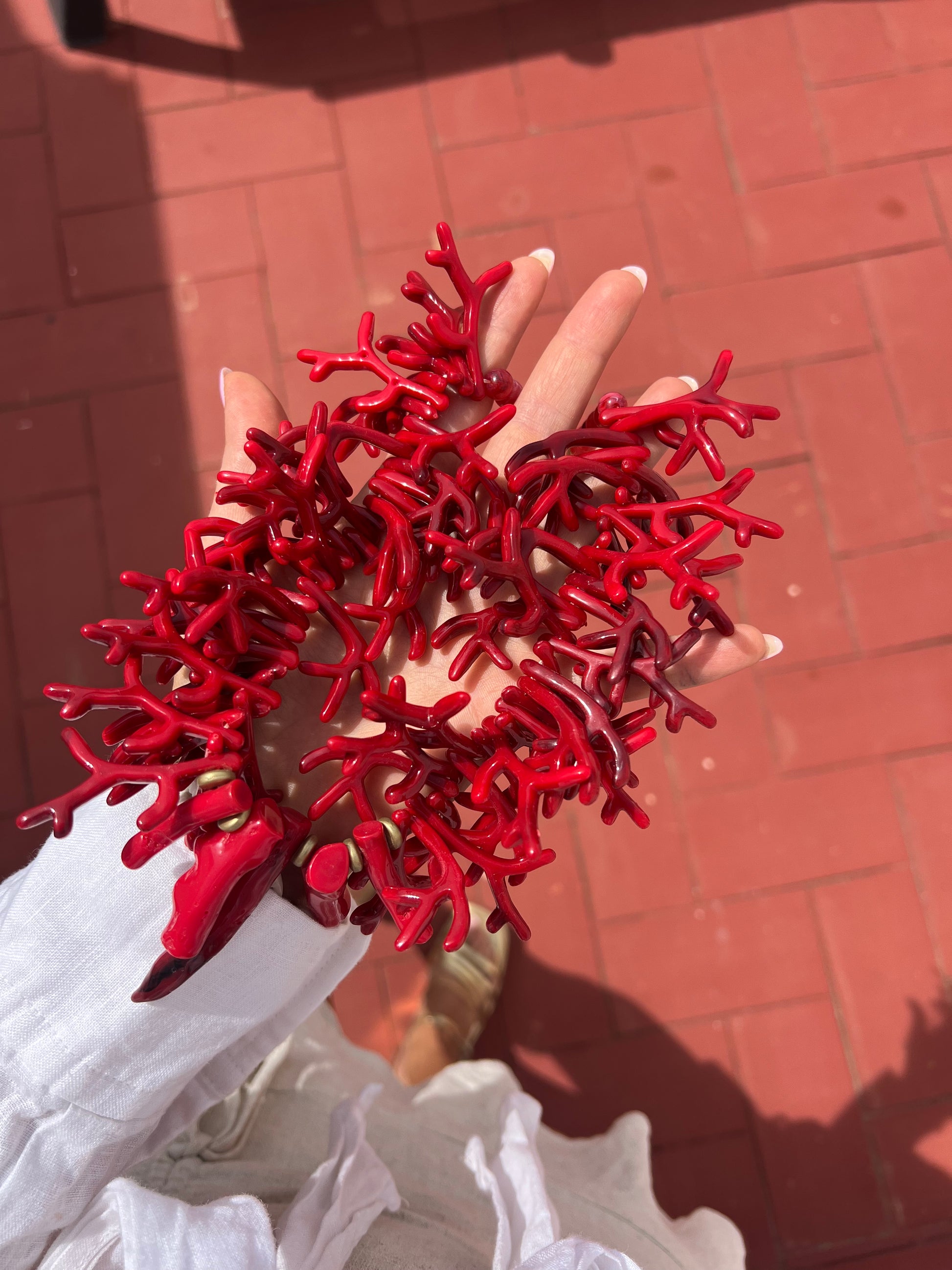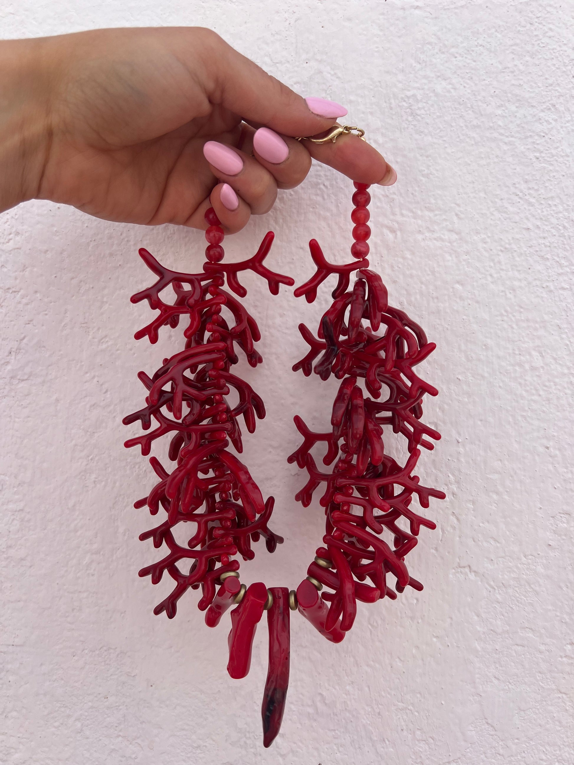 Colgante grande con imitación de coral y 4 piezas más grandes de coral en el centro.