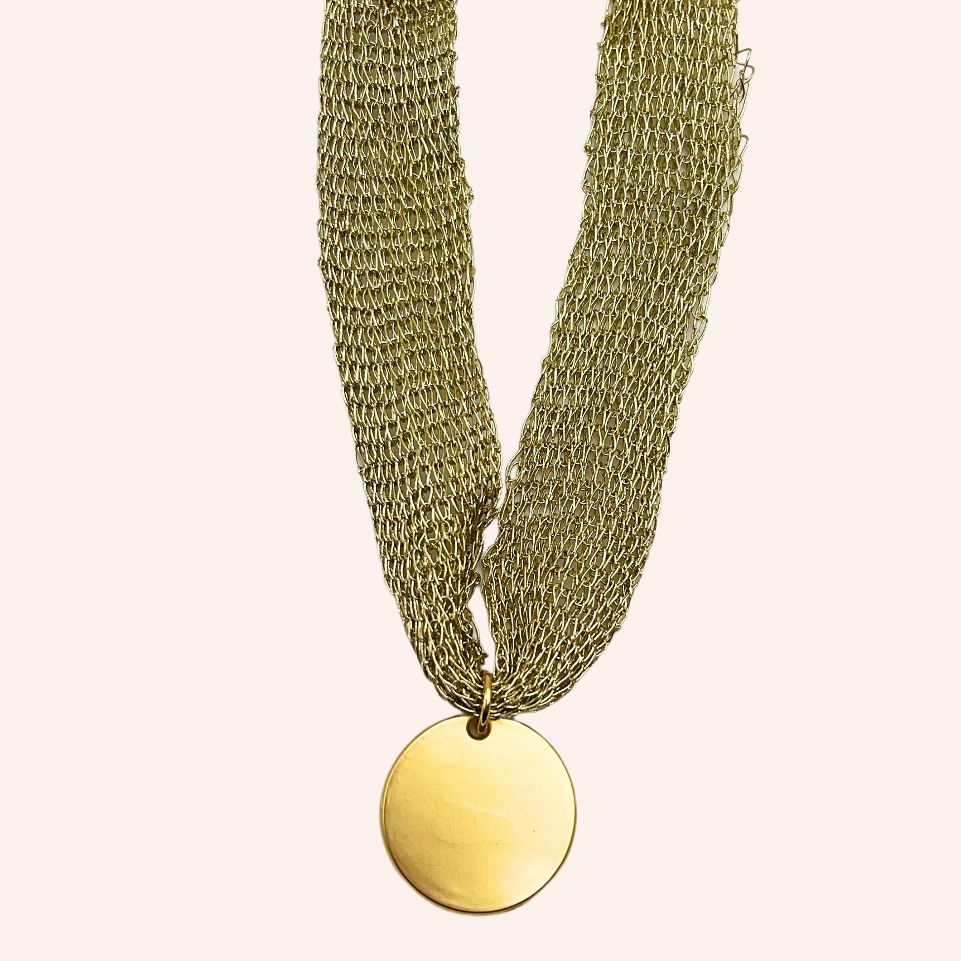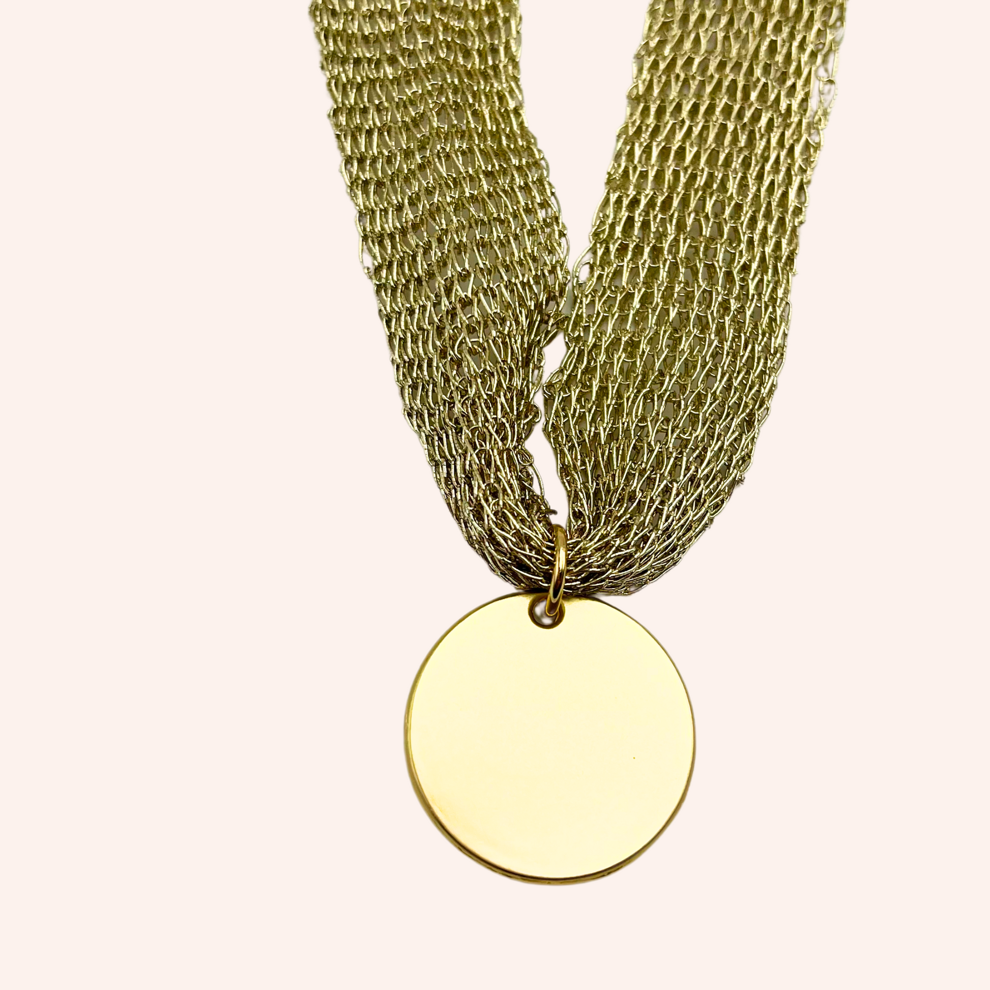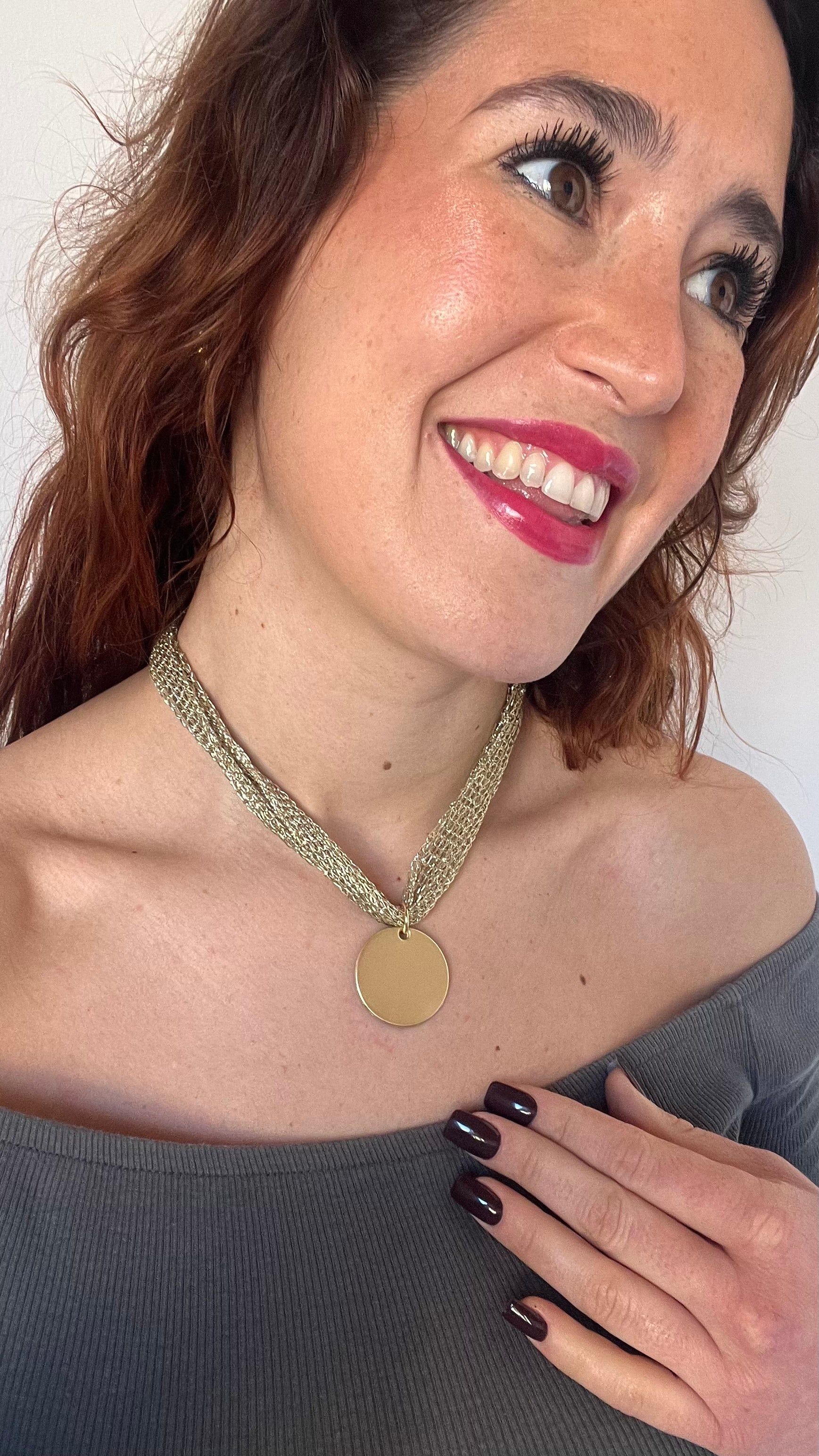 Colgante de malla de 38 cm de largo, con una medalla grande o cruz que cuelga de la malla.