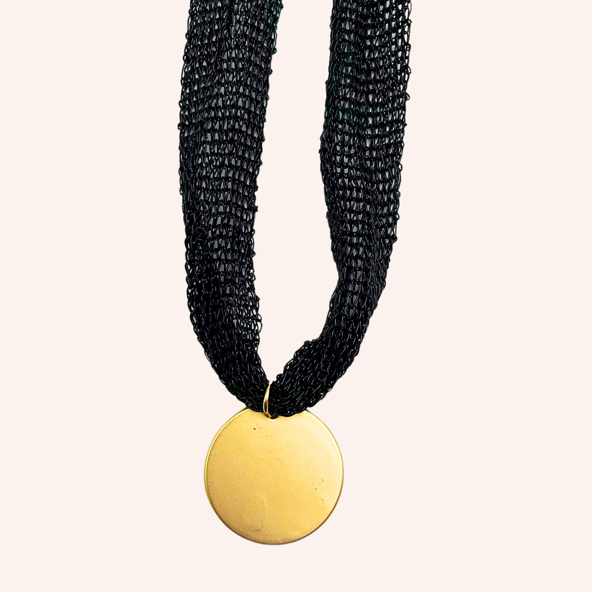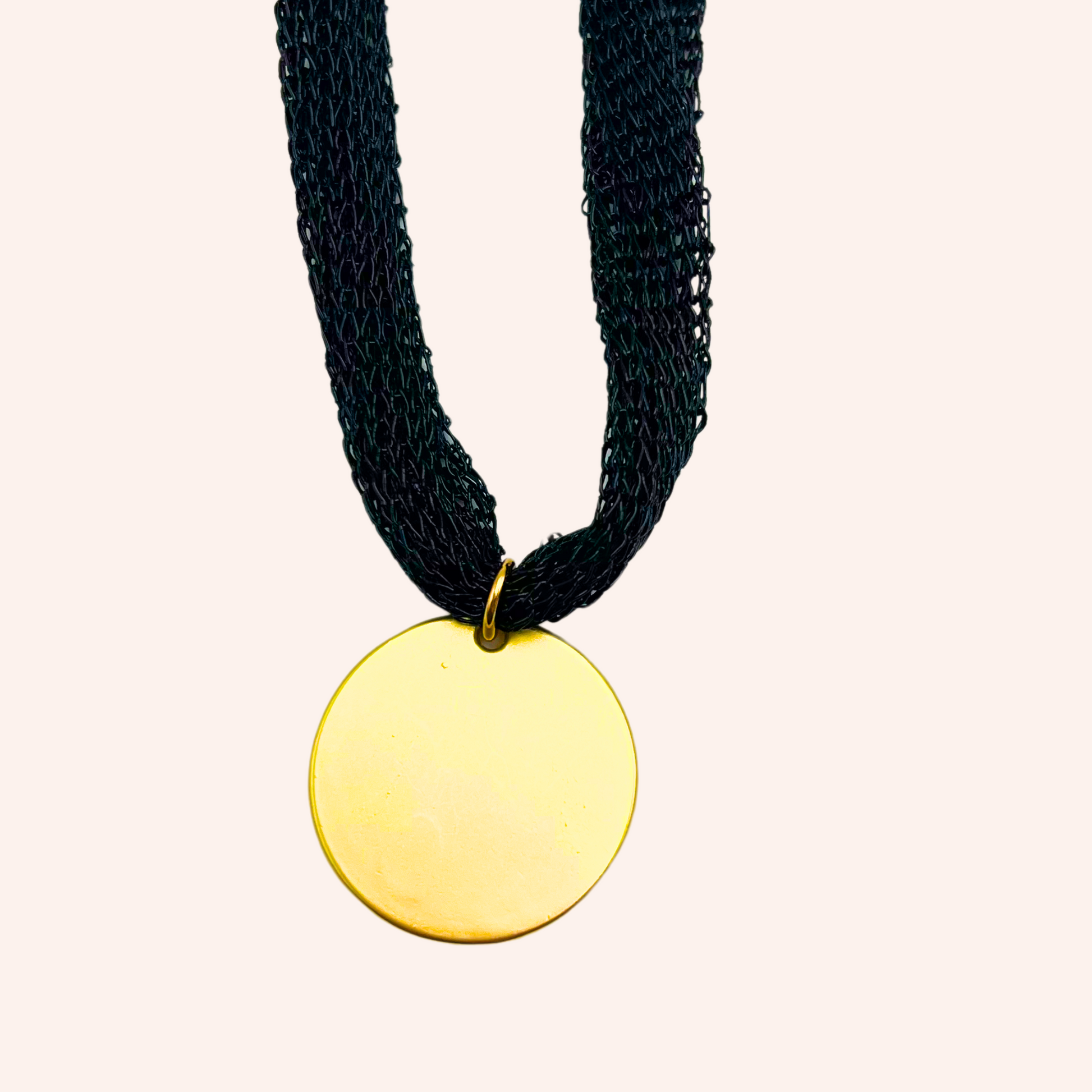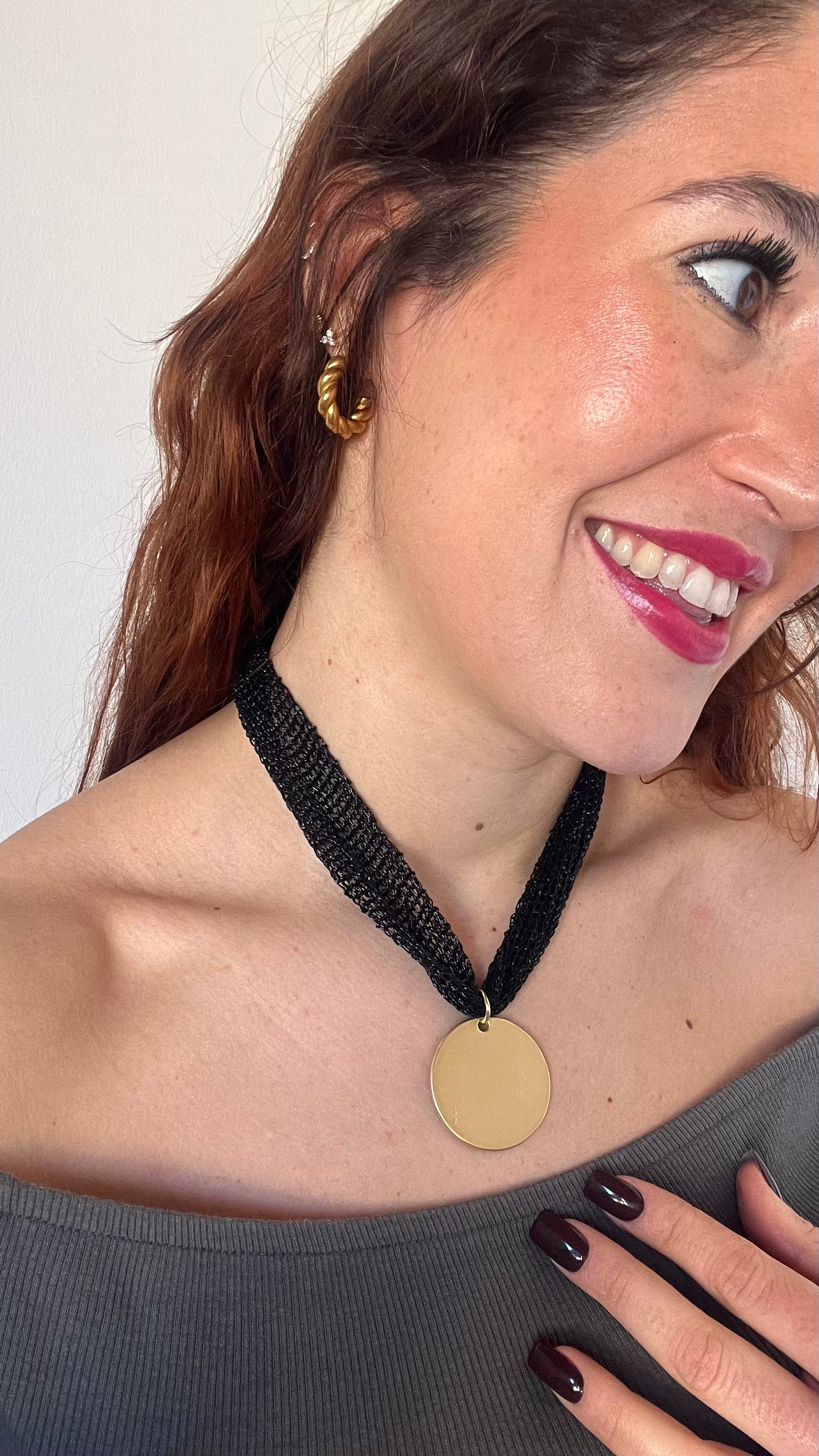 Colgante de malla de 38 cm de largo, con una medalla grande o cruz que cuelga de la malla.