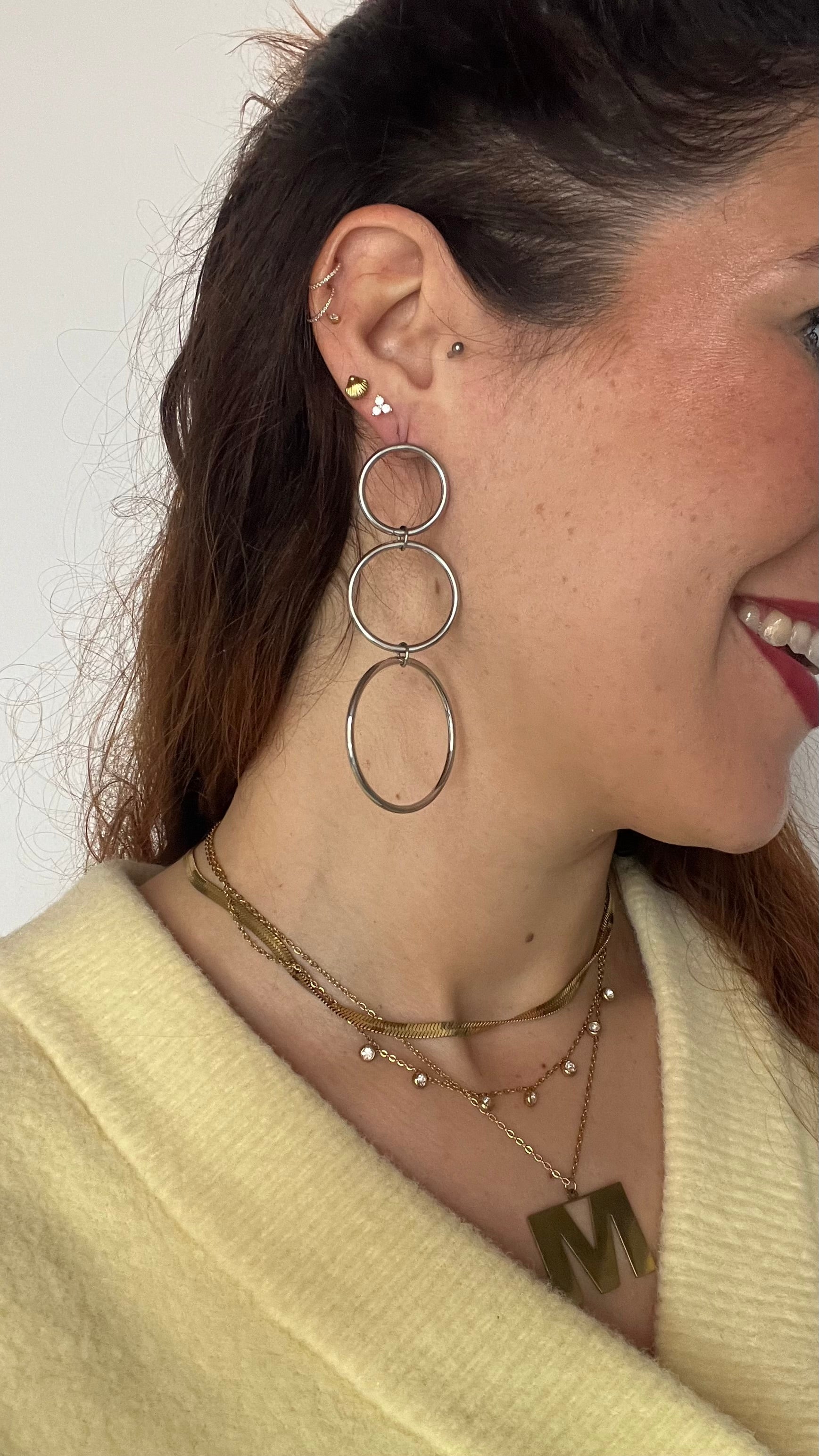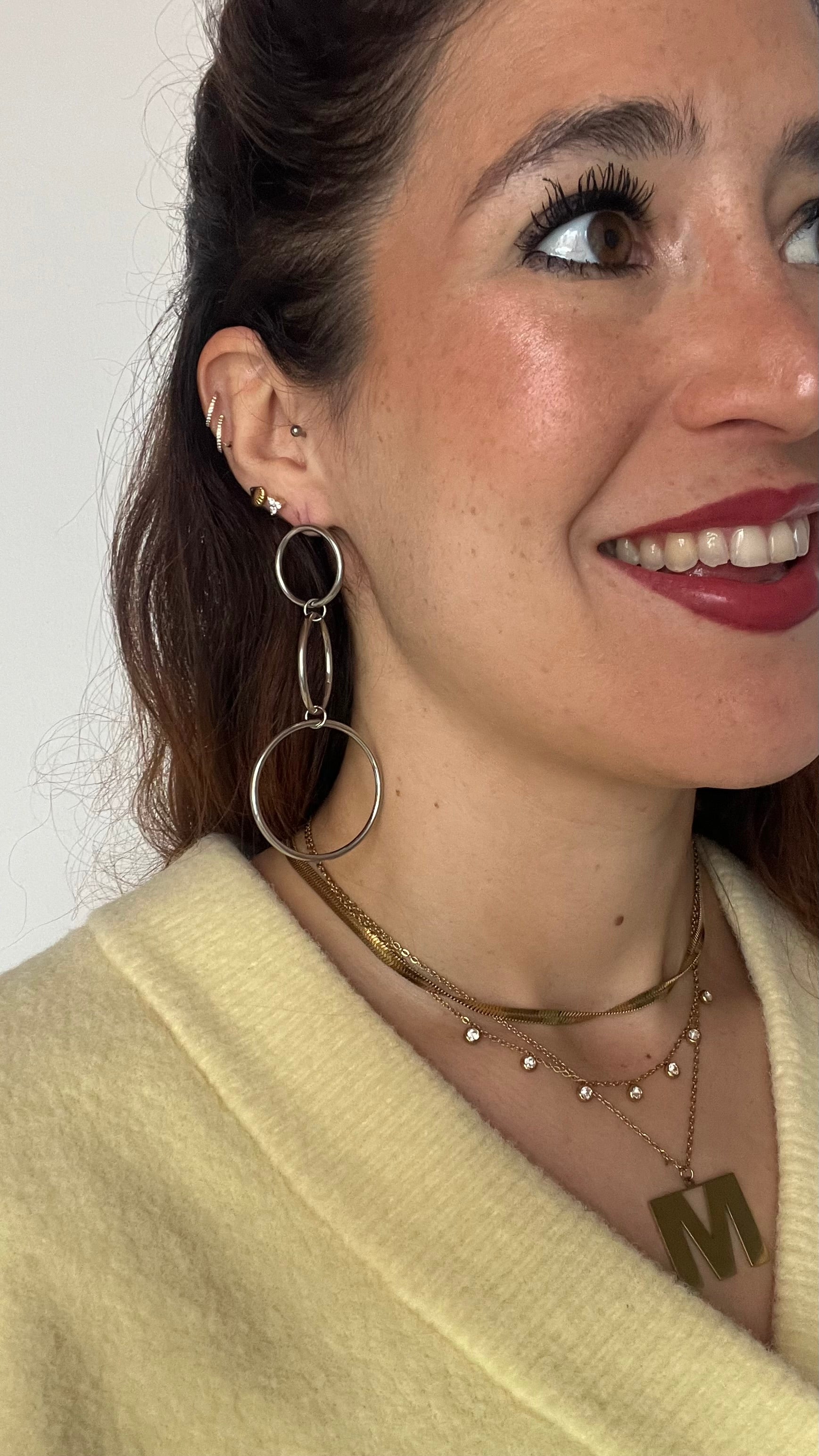 Pendientes largos de acero en forma de cadena con 3 eslabones. Tienen mucho movimiento y elevarán tu look al 10/10. No te quedes sin ellos!