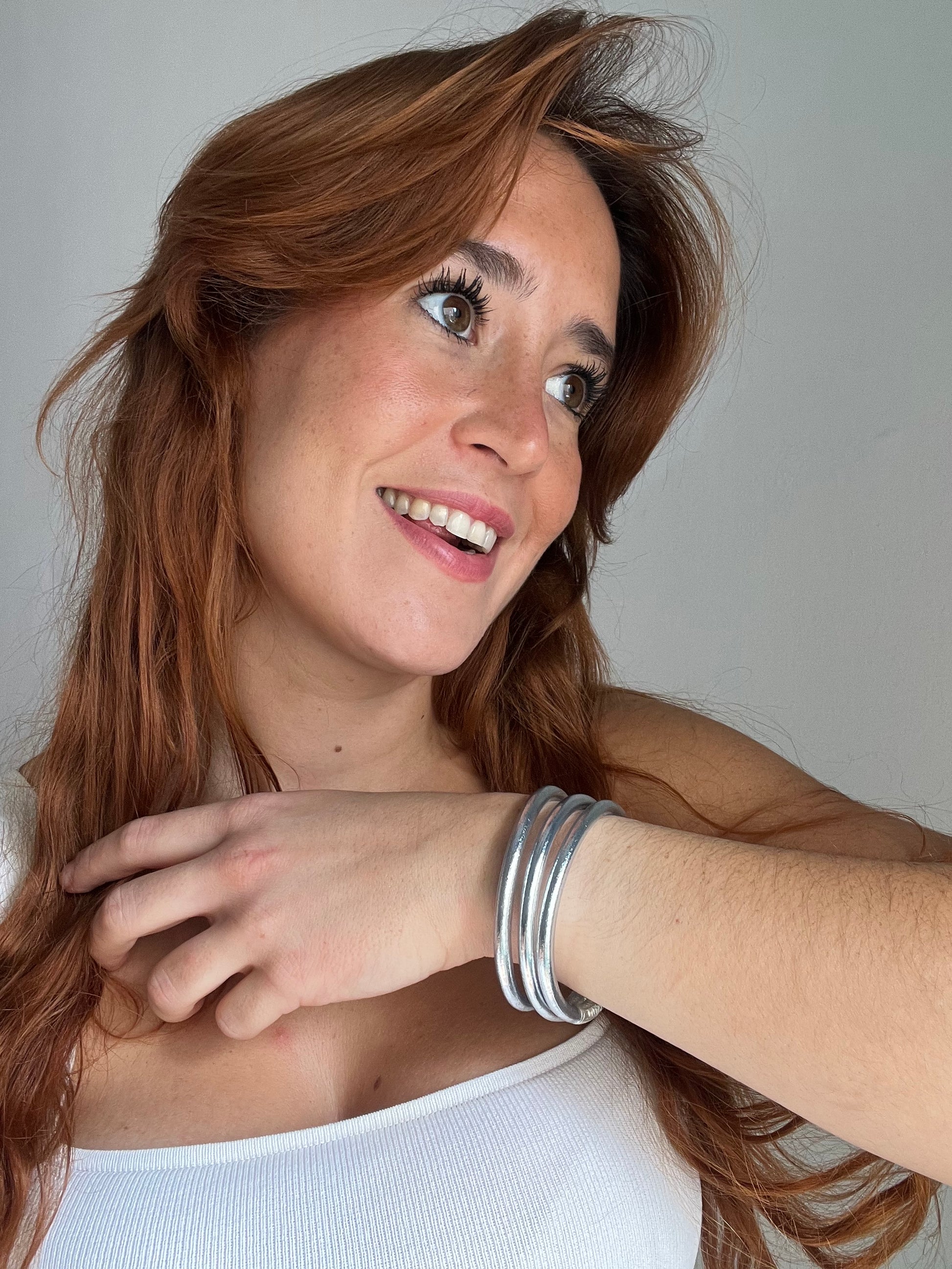 Pack de 3 Pulseras Pan de oro en color plateado. Son las originales, solo falta que escojas tu talla.