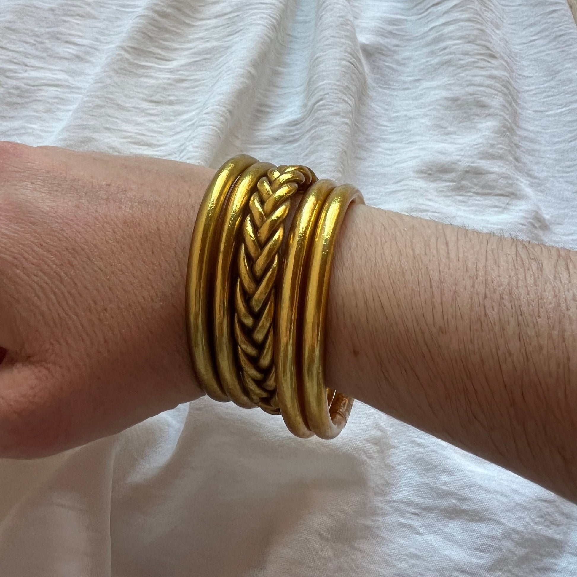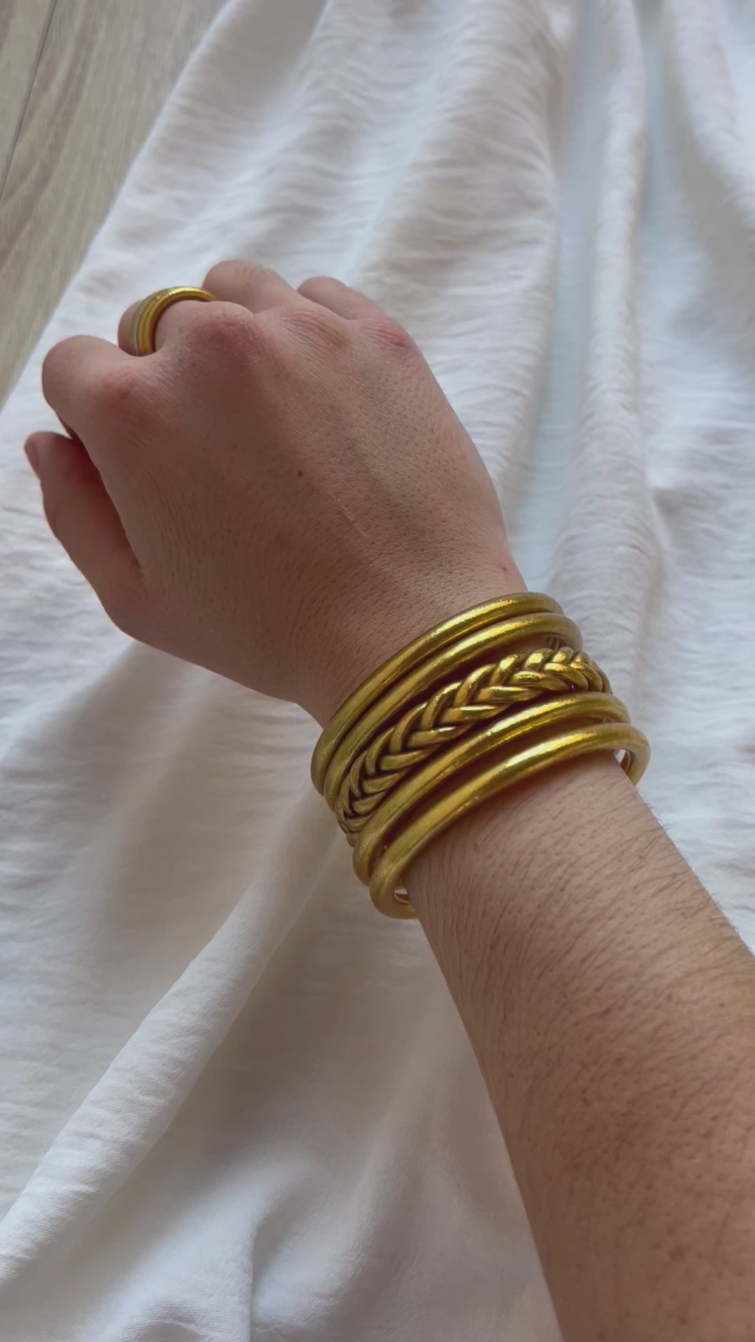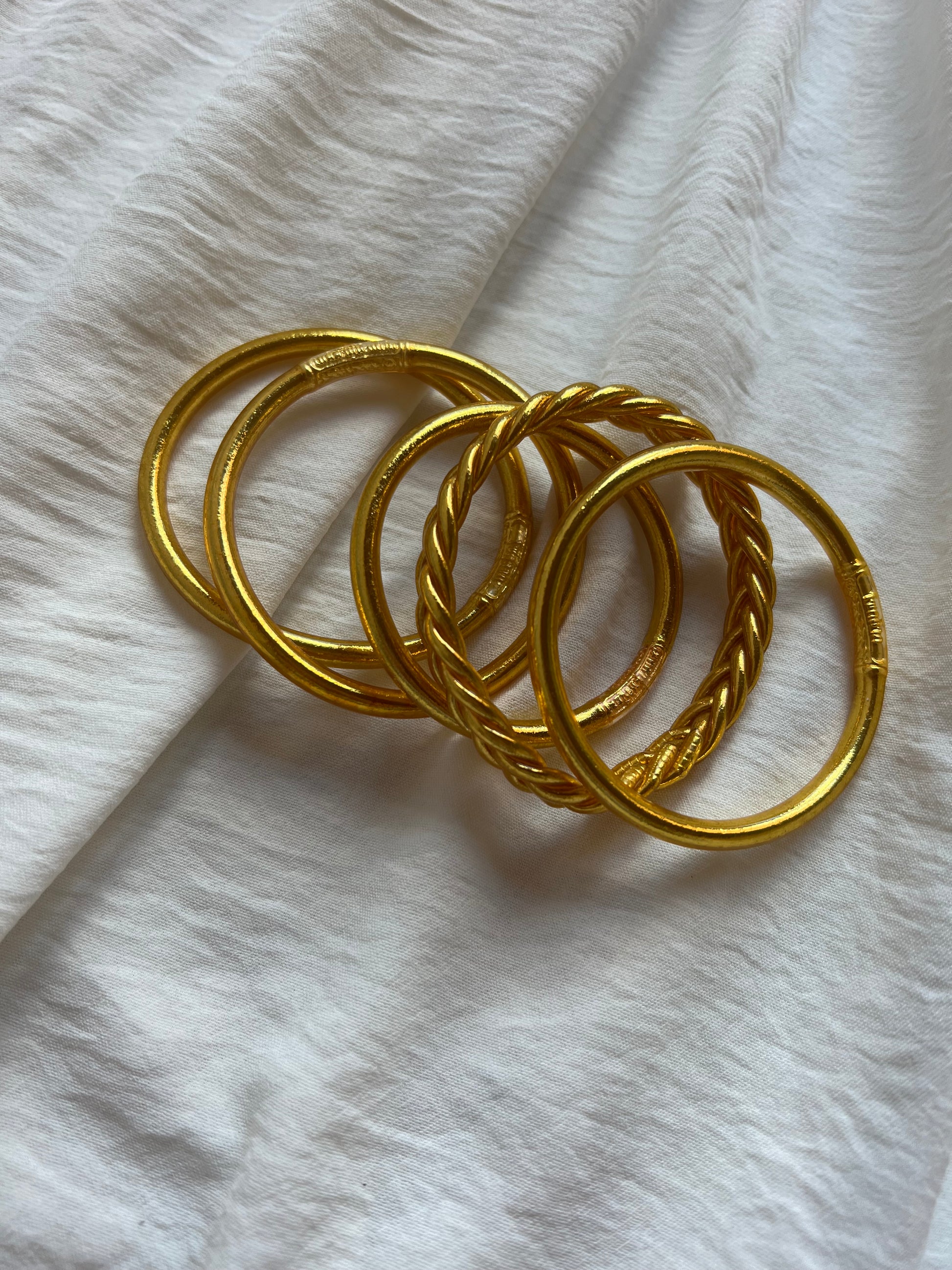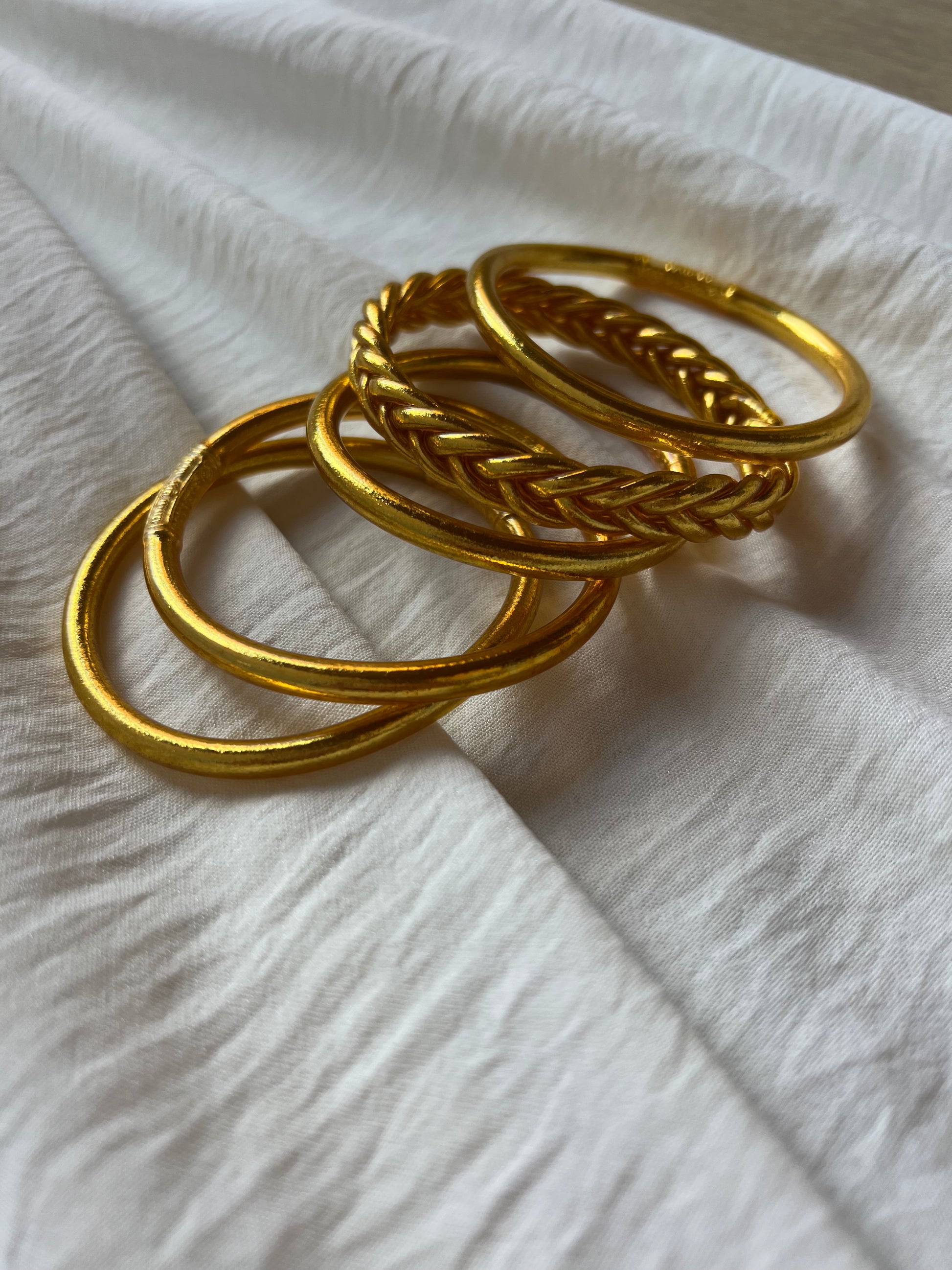 Pack de 4 Pulseras de Pan de oro clásicas y una trenzada, todas doradas. Son las originales, solo falta que escoges tu talla!