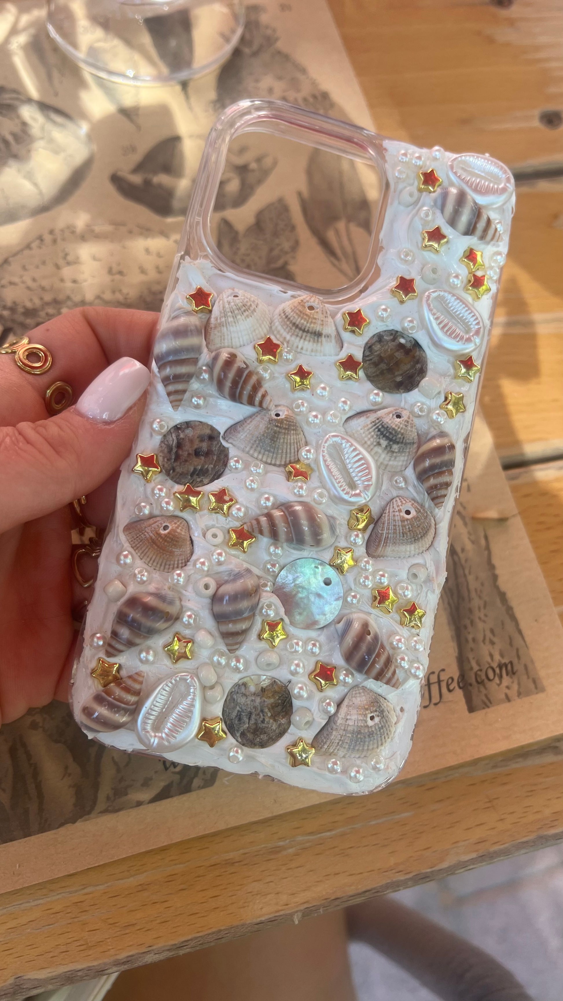 El taller incluye conchas de varias formas, abalorios y otros detalles para personalizas a tu gusto tu funda de móvil.